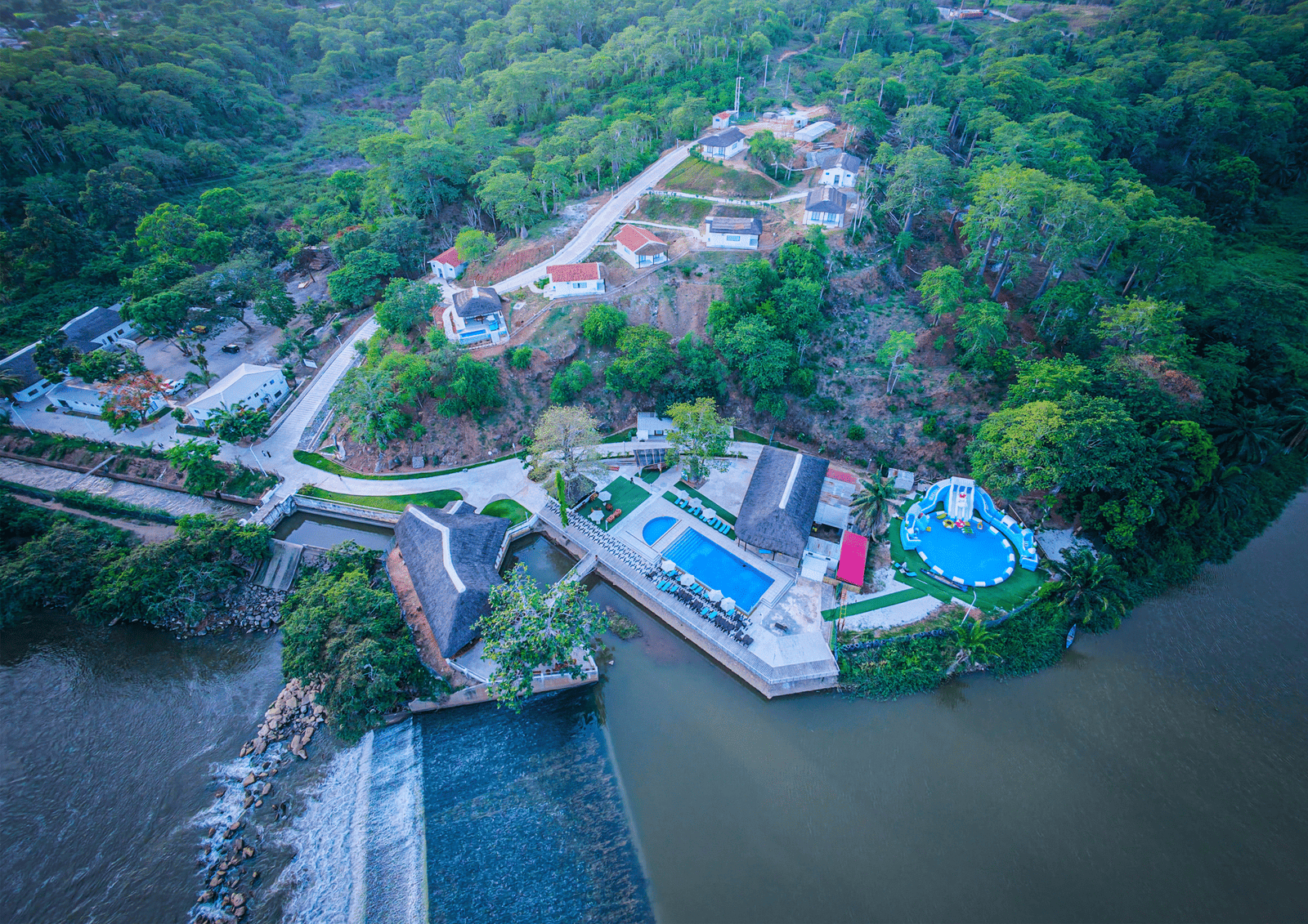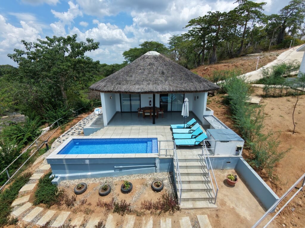 O aldeamento turístico dispõe na primeira fase 8 unidades de alojamento com 16 quartos de diversas tipologias, divididos entre Quartos suites e Quartos familiares com suites e varandas. Um restaurante panorâmico à beira do rio ideal para os que primam pela tranquilidade, bebidas deliciosas e refrescantes. Conta tambem com Piscina, Sala de Conferência e Parque de Estacionamento espaçoso. Para a segunda fase, prevê-se a construção de mais 50 casas de passagem.